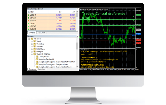 Trading Central makes sophisticated technical and fundamental analysis automatic and straightforward. Actionable market news can be delivered to you directly through WebTV or email, and trading strategies can be built from within the platform. With Trading Central, you can get a better insight into your trades.